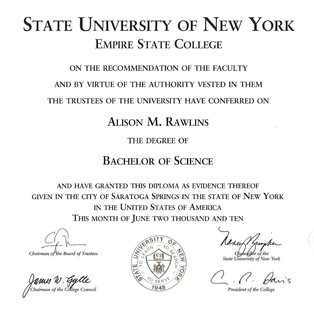 Alison Rawlins has earned an MS degree in Strategic Communication from Ithaca College, this degree was built on undergraduate studies at Tompkins Cortland Community College and Empire State College Center for Distance Learning.